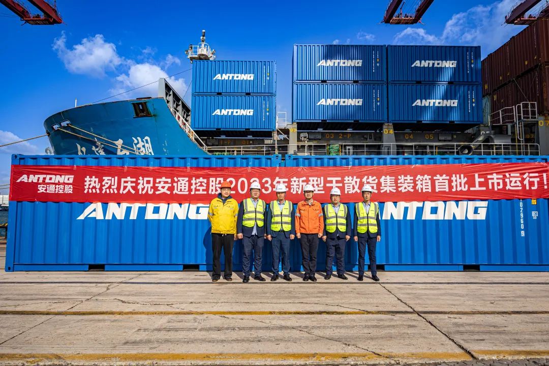 2023年11月10日,安通控股2023年首批新型干散货集装箱上市运行!预计至2026年底,总计划投入新箱8万TEU,将分批投入市场。